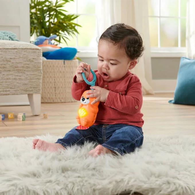 Fisher-Price vous propose le tapis sensoriel 3-en-1 avec ses couleurs contrastées et sa berceuse en forme de loutre ! Découvrez un tapis doux et moelleux de 76 x 76 cm sur lequel bébé fera ses premières découvertes dès la naissance ! Évolutif, il est conçu pour jouer de 3 manières différentes et ainsi suivre la croissance de votre enfant. En effet, bébé pourra jouer sur le dos et interagir avec les jouets suspendus au-dessus de sa tête ; jouer sur le ventre avec les jouets détachés pour muscler son cou et ses bras ; mais aussi jouer en position assise une fois les arches de jeu retirées. Les 5 jouets sont variés afin de stimuler tous les sens de votre bout’chou : un miroir pour découvrir son reflet, un hochet-hérisson souple, un anneau de dentition escargot sans BPA, un jouet arc-en-ciel à froisser, sans oublier la loutre lumineuse et musicale. La loutre émet une lumière douce pendant 15 minutes pour aider bébé à s’endormir. Détachée du tapis, un fera un superbe compagnon de jeu ! Caractéristiques : Tapis d’éveil sensoriel 5 jouets d’activité amovibles (miroir, hochet, anneau de dentition, papier froissé, berceuse) Jeux de sons et lumières pendant 15 minutes Arches de jeu amovibles Tapis doux et moelleux Couleurs contrastées S’adapte à la croissance (3 modes de jeu) Favorise le développement moteur Spécificités : Âge d’utilisation : dès la naissance Dimensions : 6 x 76 cm Composition : polyester / silicone sans BPA Entretien : lavage en machine Alimentation : nécessite 2 piles LR06 (non fournies)