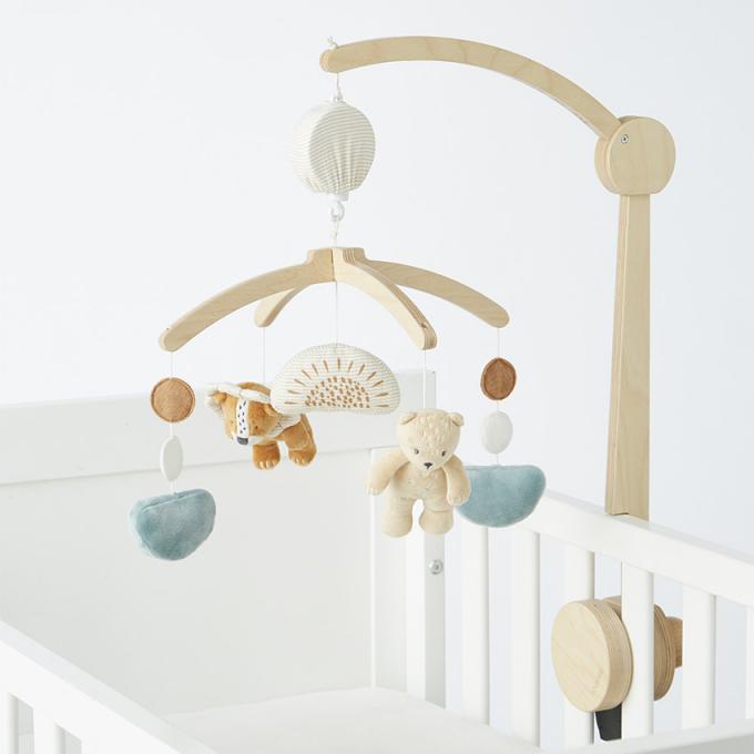 Un design naturel avec son bras en bois de bouleau ! Dans la collection Babou & Kendi de Noukie’s, retrouvez le mobile musical en bois ! Bébé s’endormira en douceur sous l’œil bienveillant de Babou et Kendi. Des couleurs douces et naturelles, pour de doux rêves en perspective ! Caractéristiques : Collection Babou & Kendi Boîte à musique manuelle Mélodie Brahms Lullaby Environ 3 à 4 minutes de mélodie 5 petites peluches toutes douces et amovibles Bras en bois naturel Spécificités : Âge d’utilisation : dès la naissance Dimensions : 25 x 40 x 12 cm Composition : 100% coton (tissus sujets) / 100% ouate polyester (garnissage) / 100% bois de bouleau (bras) Entretien : sujets amovibles lavables en machine à 30C Avertissement : retirer le mobile lorsque bébé commence à s’asseoir et à se lever afin d’éviter qu’il ne s’y suspende