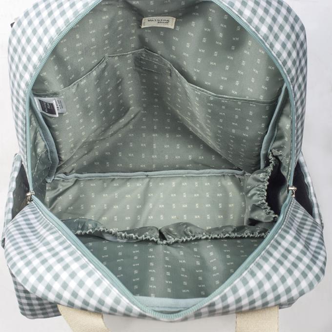 Coupe moderne, motif intemporel et très fonctionnel, le sac à dos à langer I Love Vichy de la marque Walking Mum va vous séduire par sa facilité d’utilisation et ses nombreux rangements. Proposé dans son coloris vert, ce modèle intègre toutes les fonctionnalités indispensables pour faciliter vos sorties avec bébé. Par exemple, vous pourrez accrocher sans souci le sac au guidon de votre poussette grâce à ses attaches universelles. Mais vous pourrez aussi le porter sur le dos grâce à ses bretelles rembourrées et réglables. Ce sac à dos à langer Walking Mum inclut également de nombreuses poches utiles vous permettant de ranger toutes les affaires de votre enfant à portée de main : 2 poches latérales dont une pour le biberon et une autre avec un insert pour lingettes, 1 poche frontale aimantée et plusieurs compartiments à l’intérieur. Le petit + : un tapis à langer très pratique est fourni avec l’I Love Vichy afin de pouvoir changer bébé n’importe où ! Caractéristiques : Sac à langer type sac à dos Motif vichy Grande contenance Ouverture zippée Poche latérale pour biberon Poche latérale pour paquet de lingettes Poche frontale aimantée Doublure imprimée Poches et compartiments élastiqués à l’intérieur Deux poignées Bretelles rembourrées ajustables Fixations universelles pour poussette Matériau résistant et léger Tapis à langer imprimé inclus Existe en plusieurs coloris Spécificités : Dimensions : 28 x 37 x 12 cm Composition : sans colorants azoïques ni substances nocives Entretien : tapis à langer lavable en machine / sac lavable en surface